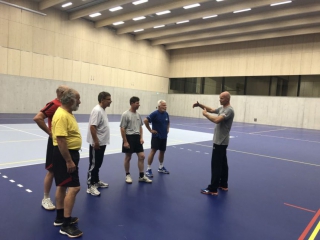Nach einem kurzen Warm Up durch Andy Fässler, waren die 14 anwesenden Männerriegler bereit für eine Volleyball-Lehrstunde.