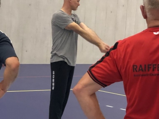 Mit viel Charm und Witz hat uns Marko anschliessend in die technischen Grundlagen des Volleyballsports eingeführt. Von Angriffsball, Annahme, Float- und Spinaufschlag stand alles wichtige auf dem Programm und nach gut einer Stunde waren wir nicht nur wegen der warmen Temperaturen in der Halle komplett durchgeschwitzt.