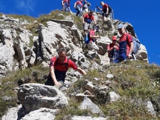 Der anschliessende Gratweg zur Pfälzerhütte führte auf einem steilen Bergpfad, teilweise mit Seilen gesichert, hinab zur Pfälzerhütte.