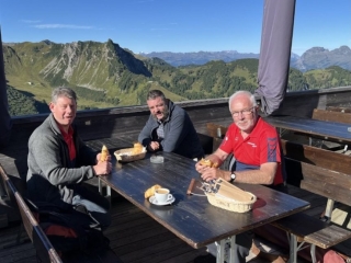 Auf der Terrasse der Pfälzerhütte konnten wir das Mittagessen geniessen. Nach der Stärkung ging es auf einem breiten Fahrweg hinab zur Alp Gritsch. Von dort auf einem Wanderweg durch Föhren und Arven zur Tälihöhi, gefolgt vom Abstieg zurück nach Malbun. Dort erwartete uns im Restaurant Schluder Jöraboden eine wohlverdiente Stärkung. Anschliessend ging es mit Bus und Bahn zurück nach Amriswil.