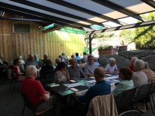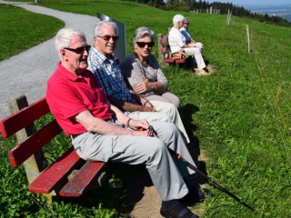 Im Restaurant Hochwacht erwartete uns ein feines Mittagessen. Es blieb genügend Zeit für viele private „schwätzchen“, den geschichtsträchtigen Aussichtsturm zu besteigen, die Aussicht zu geniessen. Alle die lieber festen Boden unter den Füssen hatten, blieb auf den vielen Bänkli genügend Zeit, bei einer Siesta die Sonne zu geniessen.