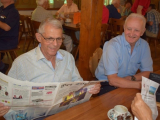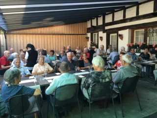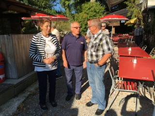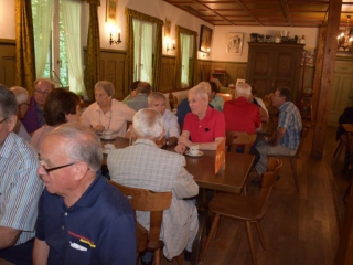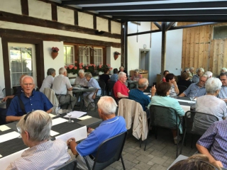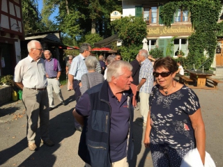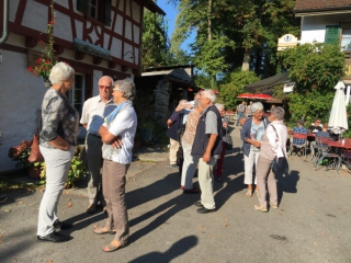 Bei schönstem Wetter fuhren 55 Mitglieder mit Partnerinnen und Witwen per Car richtung Hinter-Thurgau. Über verschlungene Wege erreichten wir die Guhwilmühle, Elgg, wo wir uns mit Kaffee und Gipfeli stärkten. Der Wirth informierte uns über die lange Geschichte der Mühle und Gaststätte.