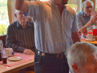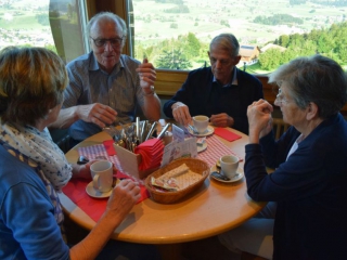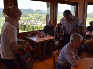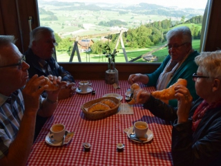 Ab dem frühen Morgen schönstes Wetter. Die Busse von Surprise führten uns richtung Toggenburg. Über Gossau, Flawil. Richtung Degersheim, Wolfertswil erreichten wir das bestens bekannte Klosterdorf Magdenau. Hinunter ins Rindal, über Lütisburg, Ganterswil in die Käserei Restaurant Berghof Aewil. Als Begleitung zu Kaffee und Gipfel durften wir von Vreni und Melch Schoch dem Wirte.- und Käserehepaar zwei Treichelstücke anhören.