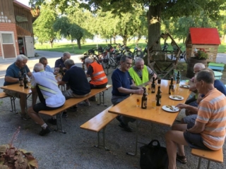 Über Hagenwil – Sonnental – Blasenberg – Chatzensteig – Ballen gelangten wir nach einer gemütlichen Fahrt, stets begleitet mit herrlicher Sicht auf den Bodensee, zu unserem Etappenziel in die Landhueb, wo wir in der „Hofstubä“ unseren grossen Durst löschen konnten. Gestärkt durch einen feinen „Schlorzi-Flade“, welchen unsere Gastgeberin extra für uns gebacken hat, machten wir uns kurz vor 8 Uhr wieder auf den Weg. Über Risershus – Muolen – Haspel gelangten wir schon bald auf die Egg, wo sich unsere Wege dann trennten und alle zufrieden über den herrlichen Ausflug wieder Richtung Heimat zurückkehrten.