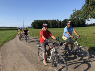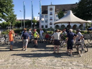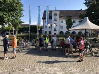 Schon bald (6. Aug.) steht das traditionelle Minigolf-Turnier wieder an und darum lud Heinz Gisler zu unserer letzten Abend-Velotour in dieser Ferienzeit ein. Bei wiederum herrlichem, sogar heissem Sommerwetter trafen sich 20! Turnveteranen pünktlich um 18 Uhr beim Treffpunkt auf dem Marktplatz.