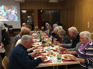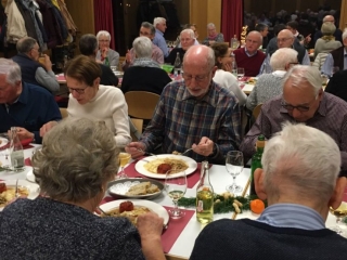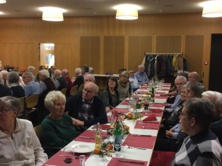 Eine stattliche Anzahl von Turnveteranen mit Ihren Partnerinnen sowie einige Witwen ehemaliger Turnkameraden folgten der Einladung des Vorstandes zum traditionellen Jahresabschlussfest im Saal des APZ. Unser ältestes Mitglied Paul Bär (96 J.) hatte eine besonders kurze Anreise, musste er doch nur die Etage wechseln. Etwas Pech hatte Präsident Hans Studer, er meldete sich 2 Tage vor seinem Abend wegen Krankheit ab.